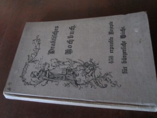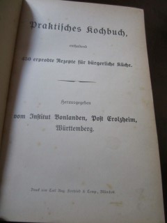 | 8687 | | deutsches | praktisches kochbuch enthaltend 450 erprobte rezepte für bürgerliche küche | institut bonlanden, post erolzheim, württemberg | carl aug. seyfried & comp. München | 1900 | * | 14,6 x 22 | 144 | ???? | 4 | schwarzer druck auf grauem leinen | | | |