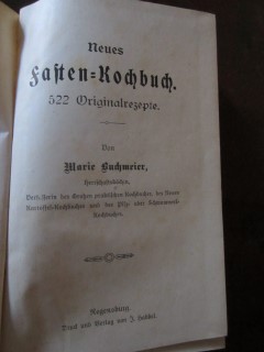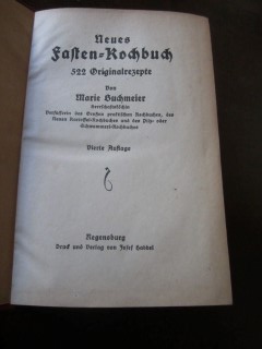 | 8690 | 4. | deutsches | neues fasten kochbuch 522 original rezepte | marie buchmeier | josef habbel, regensburg | 1913 | * | 12 x 17,6 | 269 | 533 | 4 | schwarzer druck auf rotem leinen | | | |