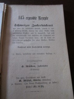 | 8797 | | schweizer | 145 erprobte rezepte der schweizer zuckerbäckerei (schweizer rezept buch für zucker- und feinbäcker) | h. müller, zuckerbäcker | g. mühl, görlitz (schlesien) | 1895 | | 11,5 x 17,8 | 48 | 2622 | 5 | schwarzer druck auf grünem karton, schwarzer leinenrücken | | | |
