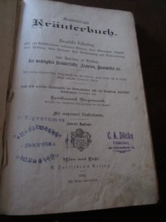 | 8799 | 2. | kräuter | gemeinnütziges kräuterbuch | ferdinand siegmund | a. hartleben's verlag, wien | 1880 | | 14,5 x 21 | 383 | | 5 | schild auf leinenrücken + ecken | | | |