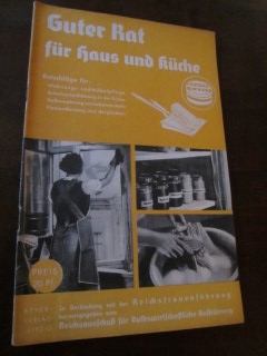 | 8807 | | haushalt | guter rat für haus und küche | reichsausschuß für volkswirtschftliche aufklärung | beyer verlag leipzig | 1943 | * | 17 x 26,5 | 32 | | 4 | geheftet | | | |