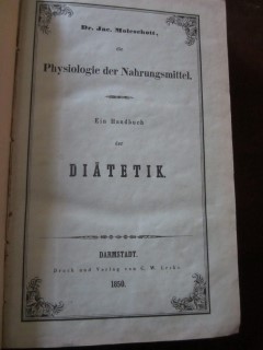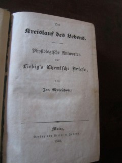 | 8816 | 1. | nahrungsmittel | der kreislauf des lebens - physiologische antworten auf liebig's chemische briefe | dr. jac. Moleschott | victor von zabern, mainz | 1852 | | 12,5 x 18,5 | 485 | | 4 | golddruck am grünen leinenrücken | | | |