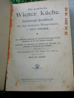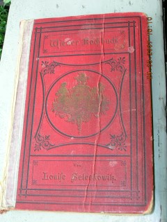 | 87 | 11. | wiener | wiener kochbuch | louise seleskowitz | wilhelm braumüller | 1901 | | 16 x 23,5 | 548 | 3578 | 6 | halber rücken fehlt geklebt, rot - golddruck | | | |