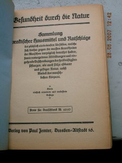 | 77 | 4. | haushalt | gesundheit durch die natur | paul zemter | verlag von paul zemter,dresden | 1920 | | 13,5 x 19,5 | 195 | | 5 | grün | | | |