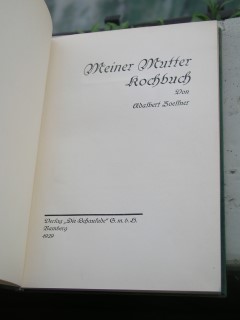 | 85 | | deutsches | meiner mutter kochbuch | adalbert zoellner | die schaulade gmbh, bamberg | 1929 | | 16,3 x 23 | 111 | | 4 | weißer druck auf grünem leinen | | | |