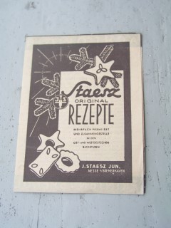 | 886 | | staesz | staesz original rezepte | | staesz jun., nesse bei bremerhaven | 1940 | * | 7,3 x 9,3 | 7 | | 4 | gefaltet - 3 falz | | | |