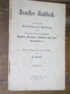 | 890 | neu durchgesehenund vermehrt | davidis | neuestes kochbuch enthaltend anweisung zur bereitu | h. davithis | w. kreuzkam, frankfurt a.m. | 1896 | * | 11,5 x 17 | 96 | 719 | 5 | ohne cover? - geheftet | | | |