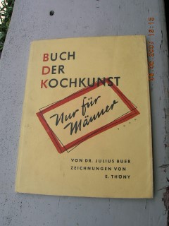 | 896 | nachdruck . 1. Aufl. 1931 | deutsches | buch der kochkunst - nur für männer | dr. julius bueb | selbstverlagdes verfassers | 1951 | | 14,5 x 18,7 | 40 | | 4 | paperback | | | |