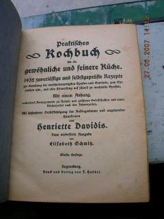| 895 | | davidis | praktisches kochbuch für die gewöhnliche und feinere küche | henriette davidis - elisabeth schmitz | j. habbel druck und verlag | 1920 | * | 17,5 x 23,3 | 765 | 704 | 5 | goldprägedruck | | | |
