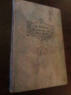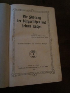 | 8977 | 7. | deutsches | die führung der bürgerlichen und feinen küche | | r. von acken, lingen a.d.ems | 1922 | | 13,2 x 20,5 | 399 | 1144 | 5 | schwarzer druck auf papp - leinenrücken | | | |