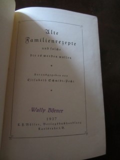 | 8974 | | deutsches | alte familienrezepte und solche die es werden wollen | elisabeth schmidt pecht | c.f. müller, karlsruhe | 1927 | | 13,8 x 20 | 111 | | 4 | roter druck auf papp + roter leinenrücken | | | |