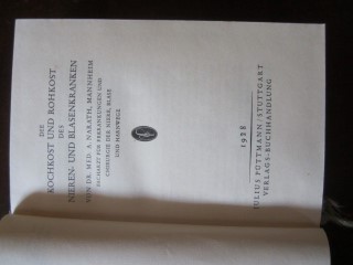 | 9015 | | diät | die kochkost und rohkost des nieren- und blasenkranken | dr.med. a. narath, mannheim | julius püttmann, stuttgart | 1928 | | 13 x 19,5 | 154 | | 4 | blauer druck auf gelbem leinen | | | |