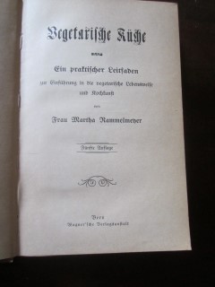 | 9016 | 5. | vegetarische | vegetarische küche - ein praktischer leitfaden zur einführung in die vegetarische lebensweise und kochkunst | frau martha rammelmeyer | wagner'sche verlagsanstalt, bern | 1904 | | 13,7 x 20,8 | 95 | 3098 | 4 | schwarzer druck | | | |
