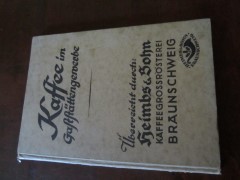 | 9200 | | getränke / kaffee | kaffee im gaststättengewerbe | | heimbs & sohn, kaffeegroßrösterei, braunschweig | 1938 | | 15 x 21,4 | 46 | | 3 | schwarzer druck auf karton | | | |