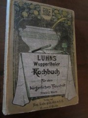 | 9316 | 3. | wuppertal | luhn's wuppertaler kochbuch - die besten recepte für den bürgerlichen mittagstisch | | verlag von luhn's seifenfabrik, barmen | 1910 | * | 14,7 x 21 | 262 | ?? | 5 | bunter druck auf ocker leinen | | | |