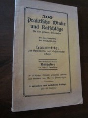 | 9327 | 4. vermehrte und verbesserte | haushalt | 300 praktische winke und ratschläge für das gesamte hauswesen | marta steinhagen | emil sahm, grenzhausen | 1930 | * | 13 x 20 | 72 | | 4 | broschürt, schwarzer druck | | | |