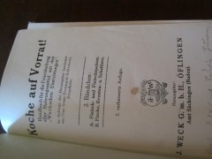 | 9322 | 6. | weck | koche auf vorrat! Handbuch für die frischhaltung | j. weck g.m.b.h., öflingen | r.th. Hauser & co. | 1910 | | 14 x 21,7 | 168 | 4099 | 4 | weißer druck auf hellem leinen | | | |
