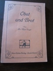 | 9372 | | obst | obst und brot | dr. max vogel | karl rohm verlag, lorch württ. | 1937 | | 13 x 18,5 | 45 | | 3 | taschenbuch | | | |
