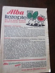 | 9384 | | alba | alba rezepte die sie auch einmal ausprobieren sollten | | gehring & neiweiser, bielefeld | 1950 | * | 14,9 x 20,9 | 3 | | 5 | bunterdruck gefaltet 1 falz | | | |