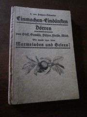 | 9416 | 12. | einmachen | einmachen -eindünsten dörren von obst, gemüse, pilzen, fleisch, milch. | l. von pröpper / hedwig schmoller | karl rohm verlag, lorch württ. | 1918 | * | 13,4 x 19,3 | 60 | | 4 | schwarzer druck auf papp | | | |