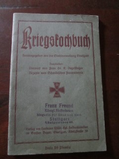 | 9418 | | krieg | kriegskochbuch | schwäbischer frauenverein | stadtverwaltung stuttgart | 1916 | * | 11,5 x 17,5 | 48 | | 4 | geheftet, schwarzer druck | | | |
