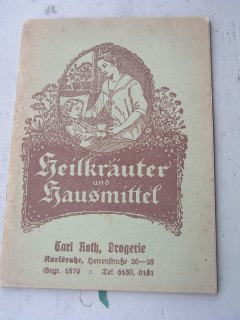 | 947 | | kräuter | heilkräuter und hausmittel | carl roth, drogerie, karlsruhe | der fachdrogist, velgs ges.m.b.h. berlin | 1895 | * | 10,7 x 15 | 32 | | 4 | brauner druck auf grün - geheftet | | | |