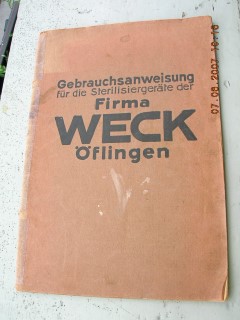 | 954 | | weck | gebrauchsanweisung für die sterilisiergeräte der f | | fa. Weck, öflingen (baden) | 1935 | * | 15,5 x 22 | 63 | | 6 | geheftet - schwarzer druck | | | |
