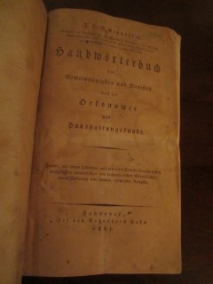 | 9616 | 2. | lexikon | handwörterbuch des gemeinnützigsten und neuesten aus der oeconomie und haushaltungskunde | j.l.g. leopold | gebrüder hahn, hannover | 1805 | | 12,5 x 21 | 598 | 2277 | 5 | taschenbuch | | | |
