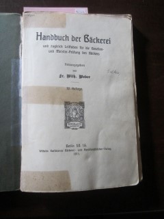 | 9622 | 4. | bäckerei | handbuch der bäckerei und zugleich leitfaden für die gesellen- und meister prüfung des bäckers | friedrich wilhelm weber | wilhelm hartmanns bäckerei- und konditoreibücher verlag, berlin | 1911 | | 13 x 19,5 | 96 | 4091 | 5 | unbedrucktes taschenbuch 2 bücher zusammengebunden | | | |