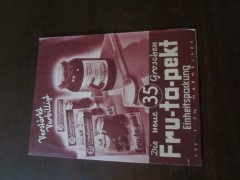 | 9642 | | fru-ta-pekt | die neue 35 groschen fru-ta-pekt einheitspackung | | fru-ta-pekt, wien | 1940 | * | 12 x 15,9 | 3 | | 4 | brauner druck, gefaltet | | | |