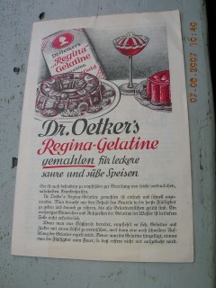 | 969 | | oetker | dr. oetkers regina gelatine gemahlen für leckere s | | dr. august oetker. Bielefeld | 1935 | * | 14 x 21,3 | 7 | | 5 | gefaltet 3 falz | | | |