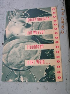 | 971 | | oetker | süsse speisen mit wasser fruchtsaft oder wein | | dr. august oetker. Bielefeld | 1935 | * | 14,8 x 20 | 5 | | 5 | gefaltet 2 falz | | | |