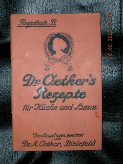 | 975 | rezeptbuch B | oetker | dr. oetker's rezepte für küche und haus | | dr. august oetker. Bielefeld | 1935 | * | 9,4 x 14,4 | 47 | | 5 | geheftet schwarzer druck auf orange | | | |