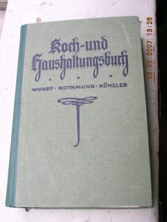 | 1008 | 19. | deutsches | kochbuch für koch- und haushaltungsschulen | e. wundt | berthold dobler, karlsruhe | 1940 | | 14,5 x 21,5 | 709 | | 3 | grün mit schwarzdruck auf leinen | | | |