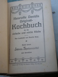 | 1007 | | davidis | henriette davidis kochbuch - ein nachschlagebuch z | henriette davidis - elsa bier | richard gahl, berlin | 1907 | * | 15,5 x 21,5 | 200 | 699 | 5 | roter karton - | | | |