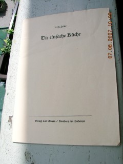 | 1012 | | deutsches | die einfache küche | a.p. zeller | carl ehlers,konstanz am bodensee | 1935 | * | 18 x 24,7 | 32 | | 4 | schwarzer druck - geheftet | | | |