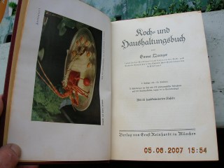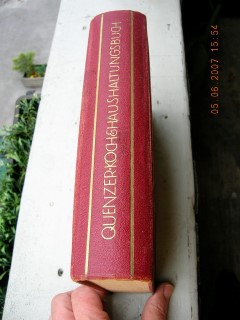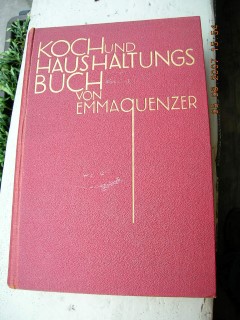 | 1018 | 7. | koch u. haushalt | koch und haushaltungsbuch | emma quenzer | verlag von ernst reinhardt | 1933 | | 17 x 24 | 560 | | 4 | goldener prägeduck auf rotem kunstleder | | | |