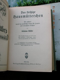 | 1009 | 19. | haushalt | das fleißige hausmütterchen | susanna müller | verlagsbuchhandlung albert zeller zürich | 1918 | | 15,3 x 22 | 857 | 2635 | 5 | prägedruck auf grün | | | |