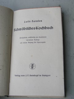 | 1013 | | schwäbisch | schwäbisches kochbuch | luise hainlen | j.f.steinkopf in stuttgart | 1948 | | 12 x 19 | 294 | | 5 | bunter schutzumschlag | | | |