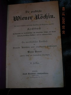 | 1016 | 11. | wiener | die praktische wiener köchin | anna bauer | jacob dirnböck's buchhandlung | 1889 | | 15 x 22,5 | 426 | 248 | 5 | neu gebunden?? | | | |