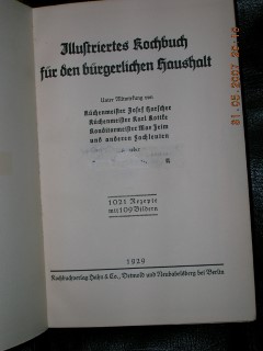 | 1024 | | deutsches | illustriertes kochbuch für den bürgerlichen hausha | ingeborg hahn | kochbuchverlag hahn & co. Detmold und neubabelsberg bei berlin | 1929 | | 15 x 21,8 | 360 | | 5 | rot schwarzer druck auf karton | | | |