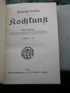| 1026 | 9.verbesserte und vermehrte | lexikon | universal lexikon der kochkunst 2. Band | | verlagsbuchhandlung von j.j. weber in leipzig | 1913 | | 16,5 x 23,5 | 694 | 3905 | 4 | leinenrücken mit golddruck | | | |