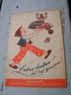 | 1054 | | rezeptdienst | hauptgerichte einmal ohne fleisch | | reichsausschuß für volkswirtschaftliche aufklärung | 1940 | * | 14,7 x 20,7 | 15 | | 6 | bunter druck - geheftet | | | |