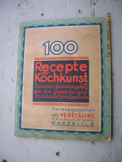 | 1057 | | vegetaline | 100 recepte der kochkunst besonders zusammengestel | | vegetaline, marseille | 1915 | * | 13,7 x 12,8 | 48 | | 5 | geheftet | | | |