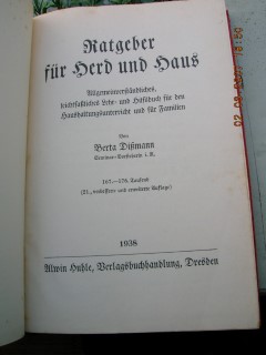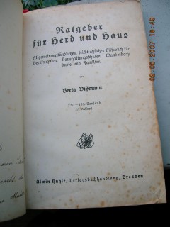 | 1060 | 17. | haushalt | ratgeber für herd und haus | berta dissmann | alwin huhle, dresden | 1930 | | 14,7 x 22,3 | 292 | | 4 | schwarzer druck auf rotem karton | | | |
