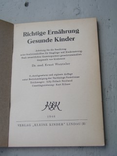 | 1202 | | ernährung | richtige ernährung - gesunde kinder | dr.med. ernst wentzler - kinderarzt | verlag kleine kinder, lindau b | 1948 | | 11,5 x 15,5 | 91 | | 4 | paperback | | | |