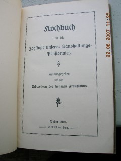 | 1206 | | deutsches | kochbuch für die zöglinge unseres haushaltungs pensionates | schwestern des heiligen franziskus | selbstverag | 1910 | | 13,7 x 20,3 | 247 | 2002 | 4 | schwarzer druck - jugendstil | | | |