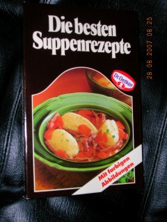 | 1299 | | suppe | die besten suppenrezepte | dr. oetker versuchsküche | arthur moewig | 1985 | | 11,5 x 18 | 160 | | 2 | taschenbuch | | | |