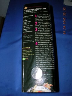 | 1457 | rezeptsammlung | fleisch | schnitzel a - z | c. kurz | eigen | 2005 | | 22 x 23 | 250 | | 3 | ringordner mit register | | | |