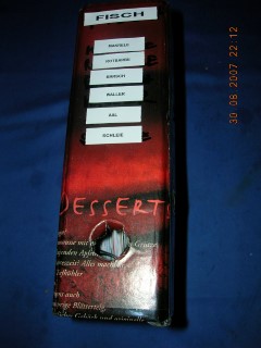 | 1470 | rezeptsammlung | fisch | 6 register:renke barbe aal schleiebarsch makrele w | c. kurz | eigen | 2005 | | 22 x 23 | 250 | | 3 | ringordner mit register | | | |